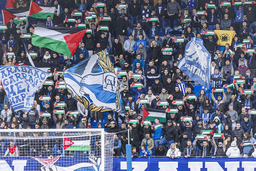 Deportivo Alaves taraftarları, maç sırasında Filistin’e destek vermek amacıyla pankart açtı.